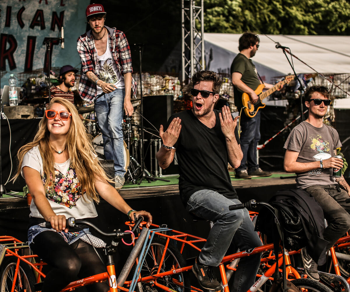 Unser Festival Setup besteht aus 10 Fahrrädern, auf denen gekoppelt die Energie für eine komplette Bühne erzeugt wird.